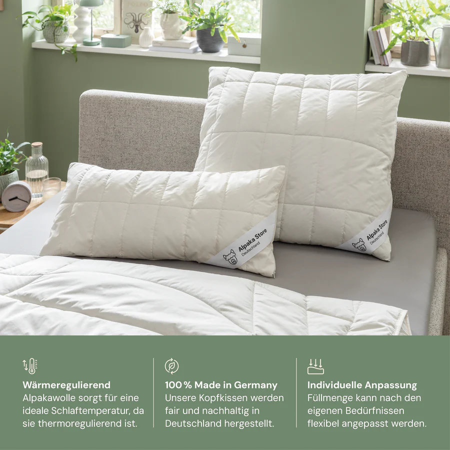Alpaka Kopfkissen mit Schafwoll – Füllung